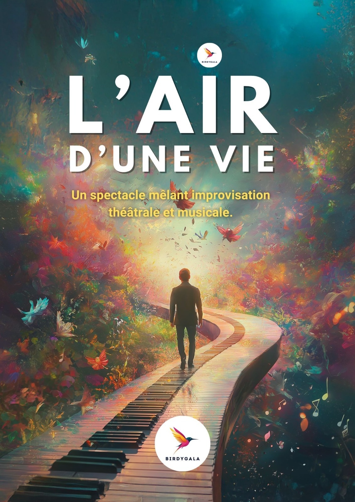 Un spectacle improvisé, mis en scène et interprété par les comédiens et musiciens de Birdygala.
